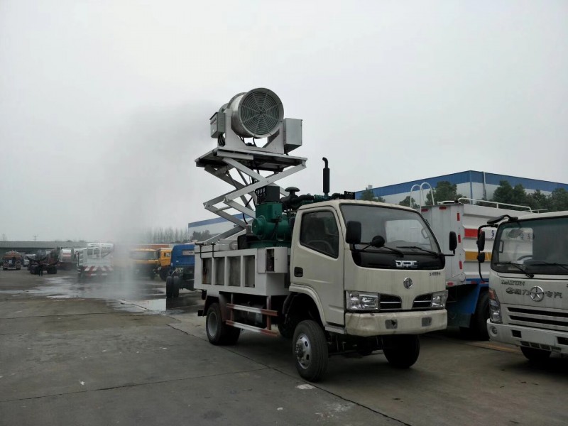 2. 東風福瑞卡抑塵車工作效率高、噴霧速度快;對容易引起塵埃的堆場噴水除塵時,噴出的霧粒細小、與飄起的塵埃接觸時,形成一種潮濕霧狀體,能快速將塵埃抑制降沉,霧量沉降率可達95%。