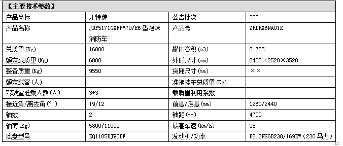 JDF5171GXFPM70/E6型泡沫消防車 產品主要技術資料
