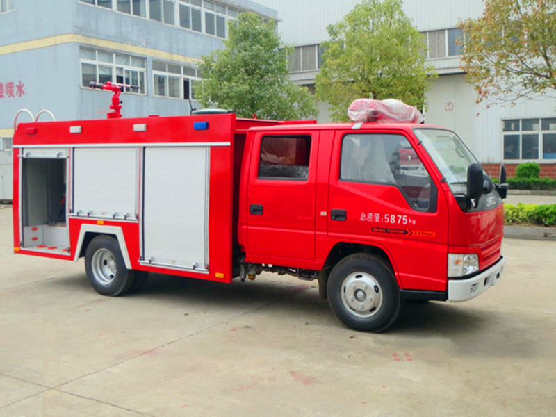 JDF5065GXFSG15/A型水罐消防車,采用江鈴JX1061TSG25底盤改裝而成。整車由消防員乘員室和車身兩大部分組成,乘員室為原裝雙排,可乘坐2+3人,該車為內倉罐結構,車身前部為水罐+器材箱,后部為泵房。載液罐體為優質碳鋼,與底盤采用彈性連接,載水2500kg,裝備了上海茸申消防器材有限公司生產CB10/20-RS型消防泵,額定流量20L/S,車頂安裝成都威斯特消防機械有限公司生產的PS20W型車用消防炮。該車最大的特點是機動靈活、操控性好、維修簡便??蓮V泛應用于公安消防隊、廠礦企業及社區、碼頭等場所,撲救一般物質火災。