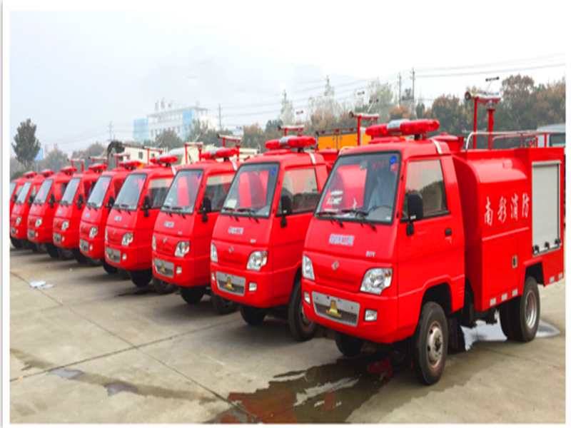 小型的2噸村鎮小型消防車一臺車長4.2米,高2.65米,寬1.6米,一個可裝1.5噸水的水罐,還有2臺滅火器、消防水帶、消防栓扳手等裝備。連接市政消防栓,通過泵浦吸水滅火,射水距離可以達到20米,可撲救7層樓的火災。車頂上還配有灑水炮,可以360度回轉,射程達30米,威力頗大。