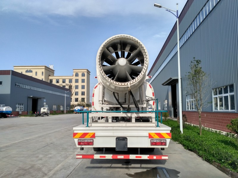 2. 東風(fēng)霧炮車工作效率高、噴霧速度快;對(duì)容易引起塵埃的堆場(chǎng)噴水除塵時(shí),噴出的霧粒細(xì)小、與飄起的塵埃接觸時(shí),形成一種潮濕霧狀體,能快速將塵埃抑制降沉,霧量沉降率可達(dá)95%。