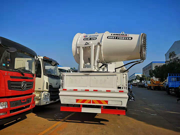 該后雙橋抑塵車負載的大型霧炮可噴射120米遠、70米高的水霧,相比普通灑水車,同樣10噸水,普通灑水車只能噴灑10分鐘,而新型霧炮車可以噴灑1個小時,覆蓋面積超過3萬平方米,大大提高了水資源利用率。