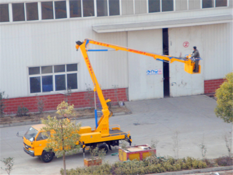 上裝使用兩節折臂液壓舉升式設計,作業高度可達14米,工作斗承載質量200KG。各工作臂均裝有定向平衡閥,用以提升臂架升、降、停止過程中的平穩性。轉臺、工作斗雙工位操作,安全又方便。工作臂可360°全方位旋轉,有效擴大作業范圍,提高工作效率。